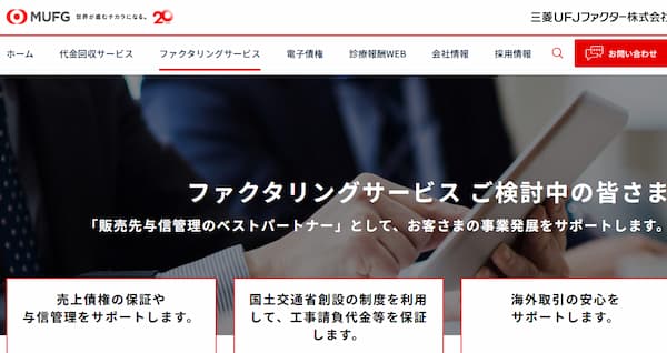 三菱UFJファクターは世界的金融グループMUFGのグループ会社が提供するファクタリングサービスです。